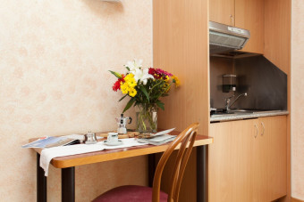 Gli appartamenti per UNA, DUE, TRE e QUATTRO persone sono tutti dotati di angolo cottura attrezzato con microonde, frigorifero e tutti gli utensili necessari per cucinare in autonomia.