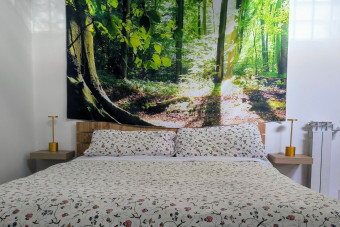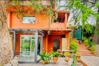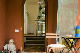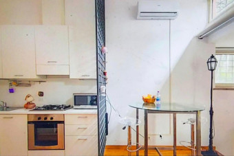 Luminoso Open Space composto da camera da letto con 1 letto matrimoniale, 1 divano letto, veranda sul giardino, cucina completa di frigorifero, lavasciuga, 1 bagno con doccia, 1 armadio interno, uno esterno, tavolino con sedie sul patio. L' appartamento dista 850 metri dall'ospedale San Pietro e si trova a 5 minuti di auto dall'ospedale Sant'Andrea di Roma.