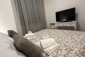 Delizioso appartamento con terrazzo vivibile dotato di una camera da letto doppia e soggiorno con divano letto, cucina con utensili, frigorifero e macchina da caffè, bagno con bidet e set di cortesia (biancheria a disposizione).