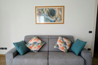 E' situato al secondo piano con ascensore e può ospitare comodamente fino a 4 persone. Dispone di una camera matrimoniale, ampio soggiorno con divano letto, cucina abitabile e bagno finestrato con vasca da bagno e doccia incorporata.