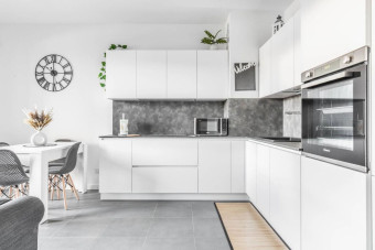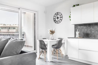 La zona giorno vede protagonista dei quadri minimalisti ed è dotata di un divano letto (190x140), Smart TV UHD da 43” comprensiva di account Netflix gratuito già registrato, grande cucina a vista con tavolo rettangolare da 4, piano cottura a 4 fuochi, forno di ultima generazione, frigorifero grande con scomparto freezer, set completo di pentole, piatti, posate e quanto necessario per creare pietanze soli o in compagnia.