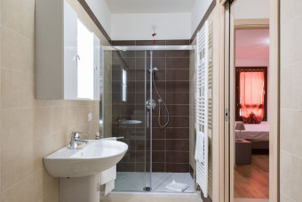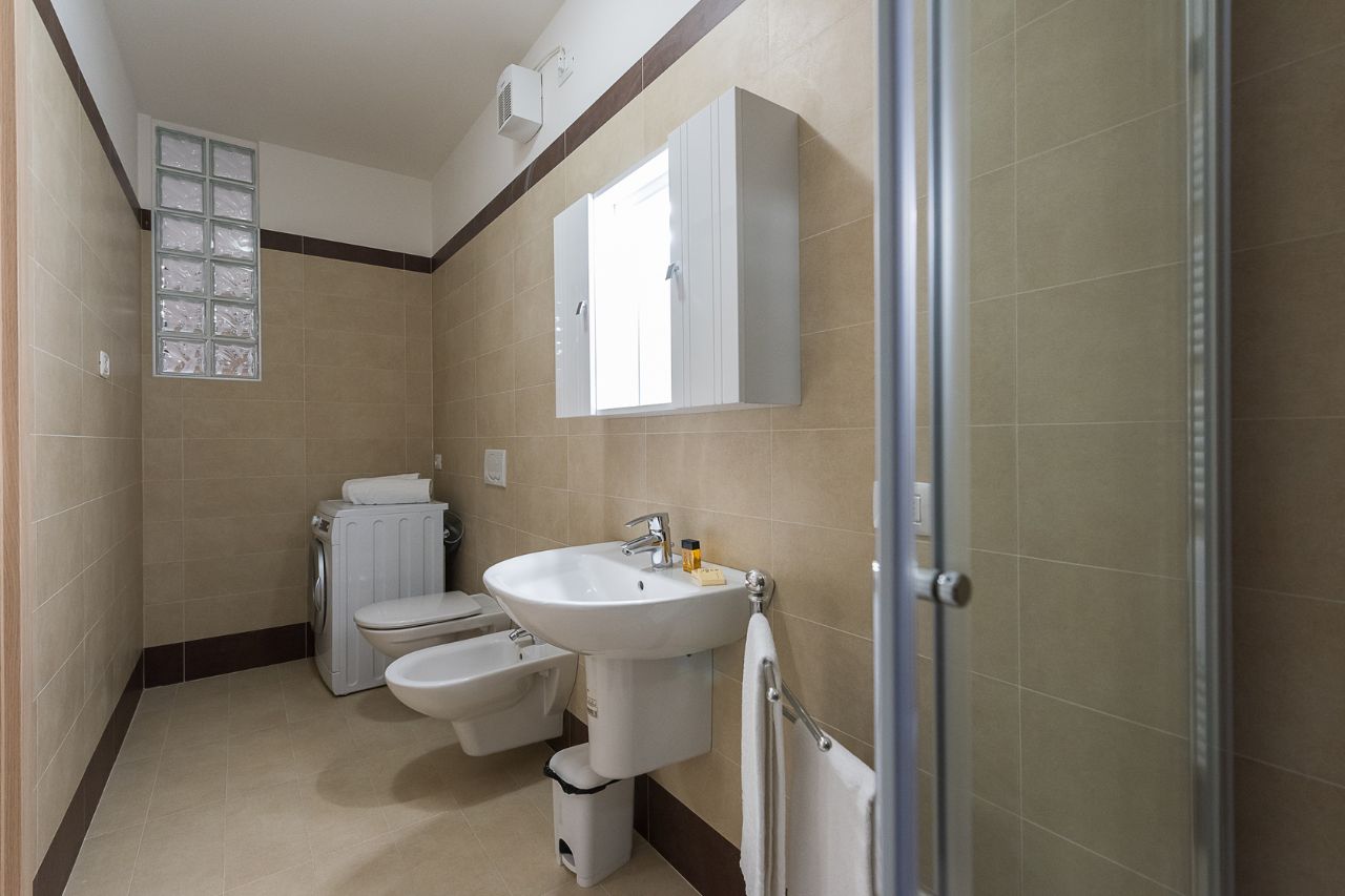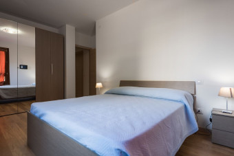 L'angolo cottura è fornito di tutto il necessario per cucinare ed è completato da un ampio tavolo da pranzo con sedie. Entrando nella zona notte sulla destra si trova una camera con due letti singoli e un piccolo armadio bianco. La camera da letto principale dispone invece di un letto matrimoniale, comodini, comò e un capiente armadio. Il bagno, come il resto dell'appartamento, è elegante e dotato di un'ampia doccia. L’appartamento è fornito di aria condizionata, lavatrice, lavastoviglie, phon e Wi-Fi.