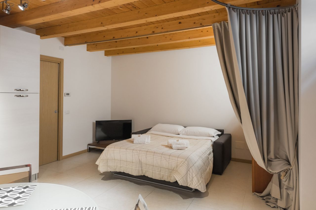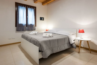 La zona notte è costituita da una camera da letto matrimoniale arredata con un armadio con ante a specchio. L’elegante e moderno bagno è dotato di un'ampia doccia.