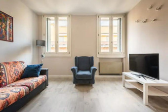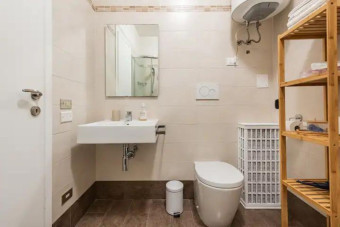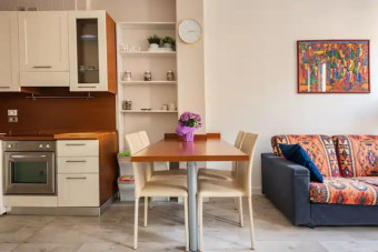E' stato rinnovato da poco ed è composto da 1 camera silenziosa, bagno con antibagno e da un ampio soggiorno con cucinotto.
