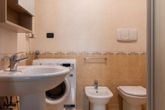 - Zona lavanderia ben attrezzata con lavatrice e asciugatrice, ferro e asse da stiro, stendibiancheria e comodo ripostiglio
