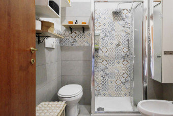 Il primo bagno offre una cabina doccia, sanitari completi, shampoo, balsamo, bagno doccia e tutto il necessario.