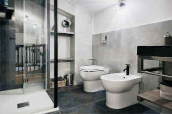 Inoltre è presente un secondo bagno stile industrial arredato con gusto, dotato di cabina doccia spaziosa e servizi igienici. Completa il secondo livello una spaziosa zona armadi.